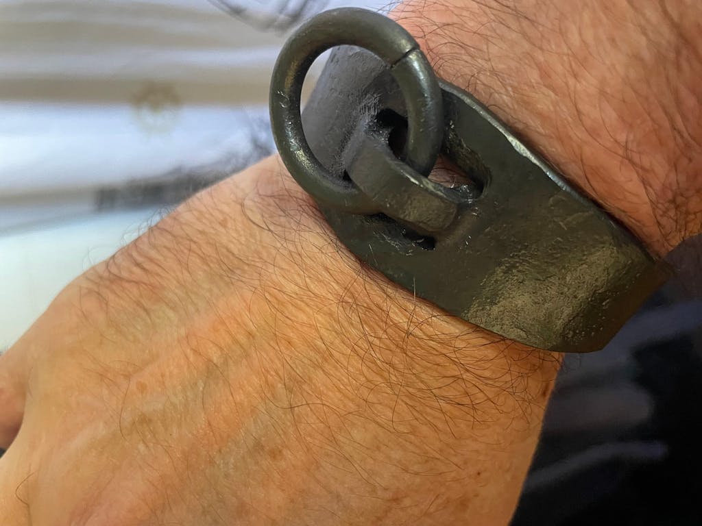 Hand-Forged Iron Bracelet with Moving Ring