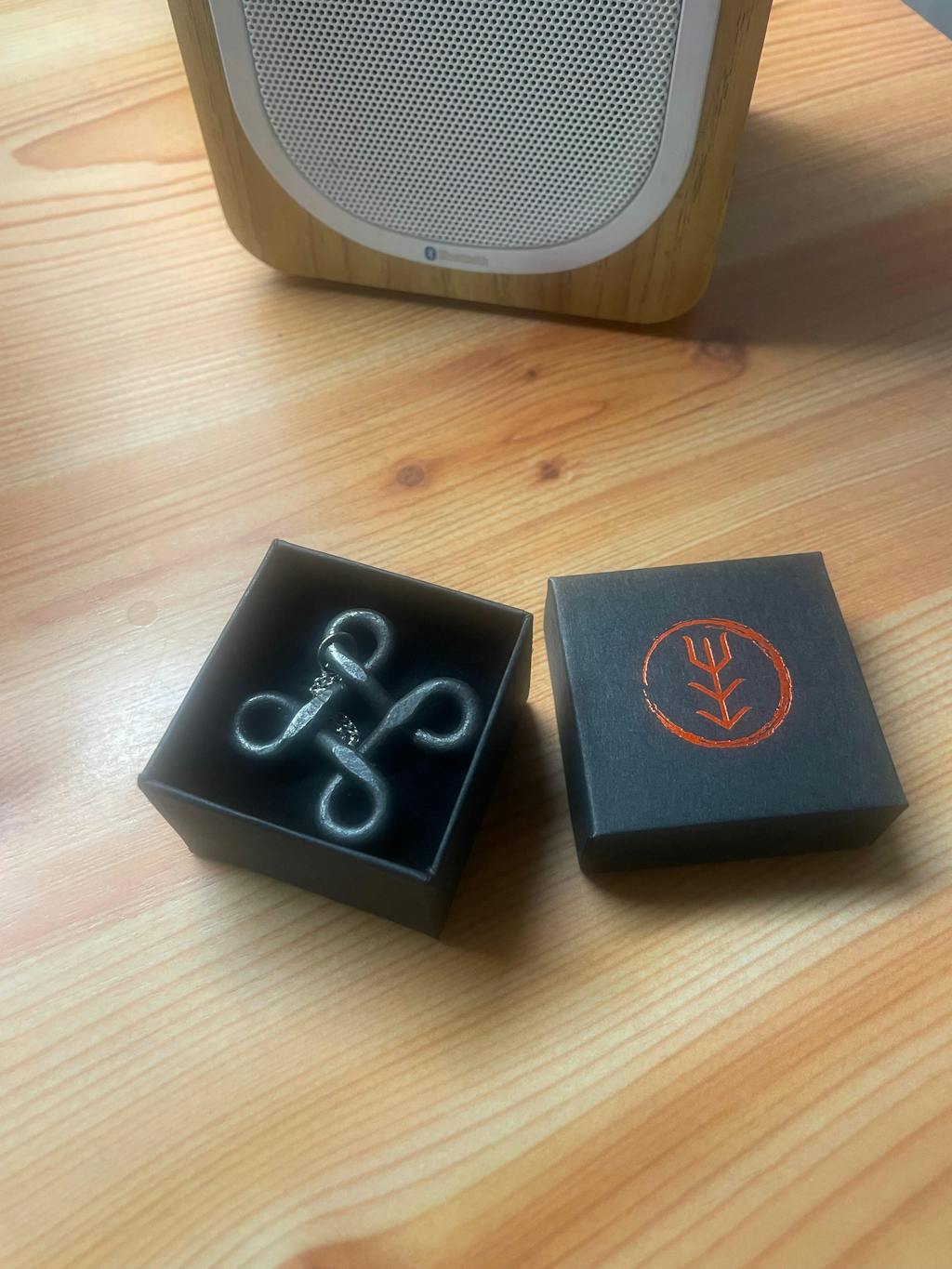 Interwoven Strength and Intentional Design: Hand-forged from enduring iron, this pendant gives solid, tangible form to the protective Hannunvaakuna.