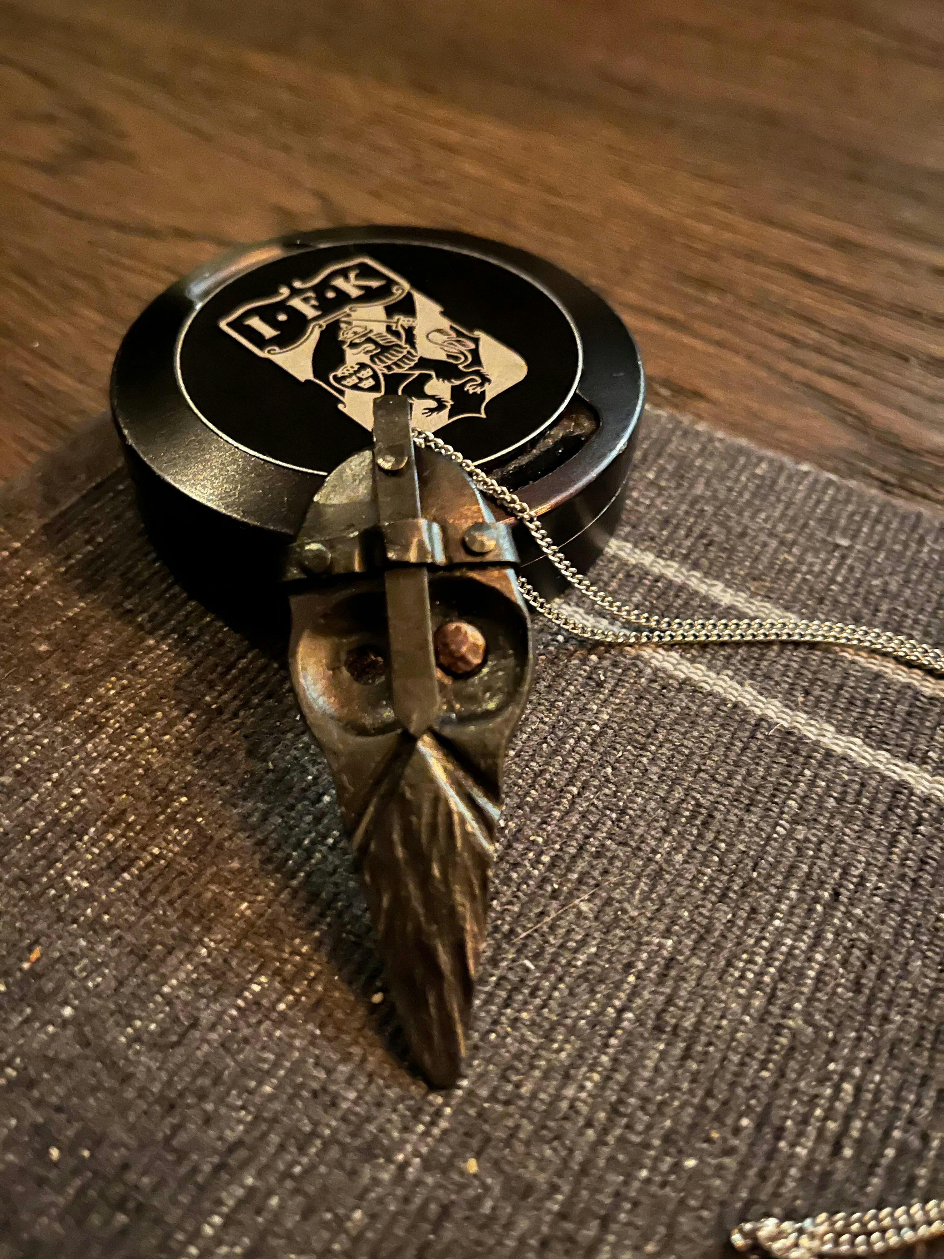 • Materials: Pendant is forged out of iron with a copper rivet. The chain is stainless steel.
