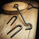 Crafted with Purpose: Hand-forged from solid iron, this gate latch is built for enduring utility. Each component – the sturdy bar, the lifting loop, the curved catch, and the staples – is shaped individually by the blacksmith's hammer and anvil. The result is a piece of hardware that is immensely strong, functional, and carries the deep texture and character only achieved through traditional forging methods. It is made to withstand the elements and the test of time.
