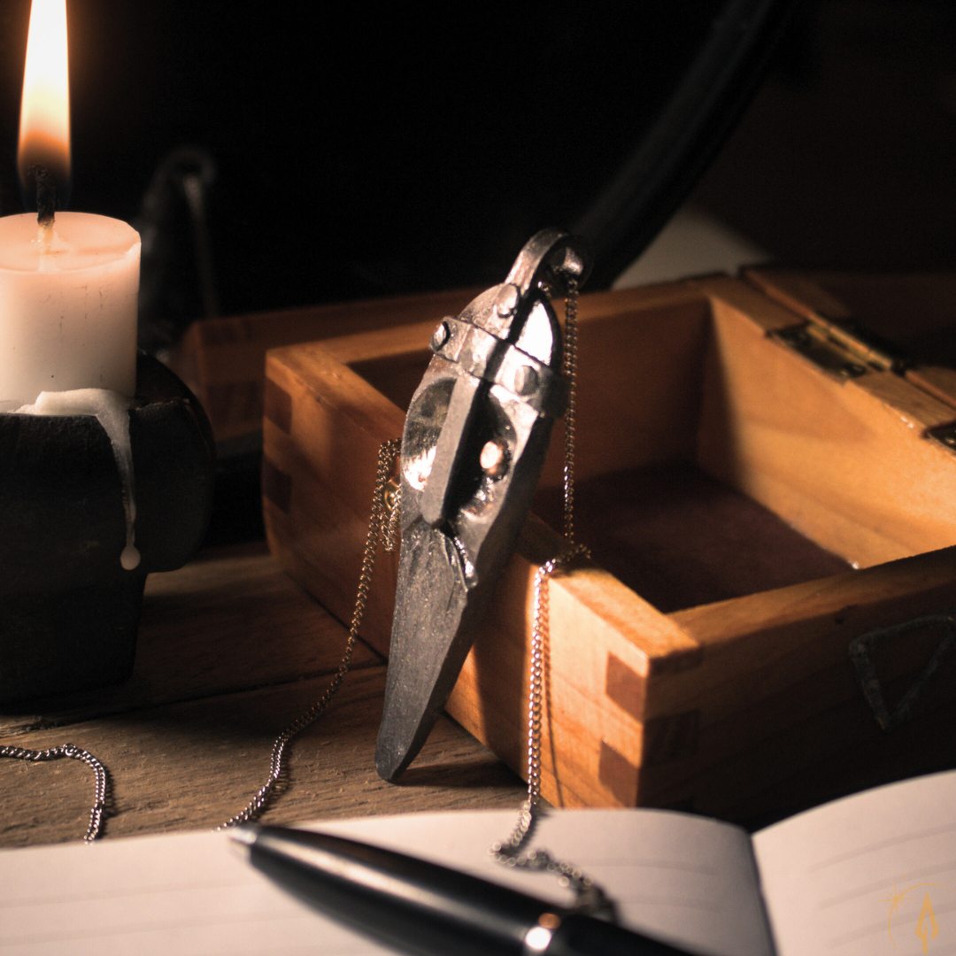 • Materials: Pendant is forged out of iron with a copper rivet. The chain is stainless steel.