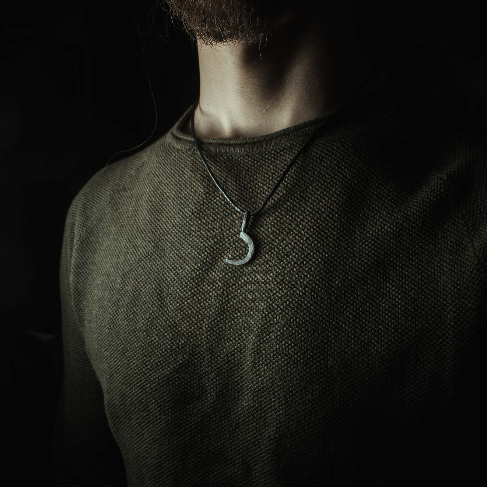 Crafted with Purpose: Hand-forged from iron, this pendant embodies the practical strength and historical significance of the sickle. The curved blade is shaped with deliberate hammer blows, giving it a realistic form and the tactile texture of hand-worked metal. The attachment point is seamlessly integrated, ensuring this piece is as durable as the tool it represents. It is a testament to the smith's skill in rendering a functional form into wearable art.
