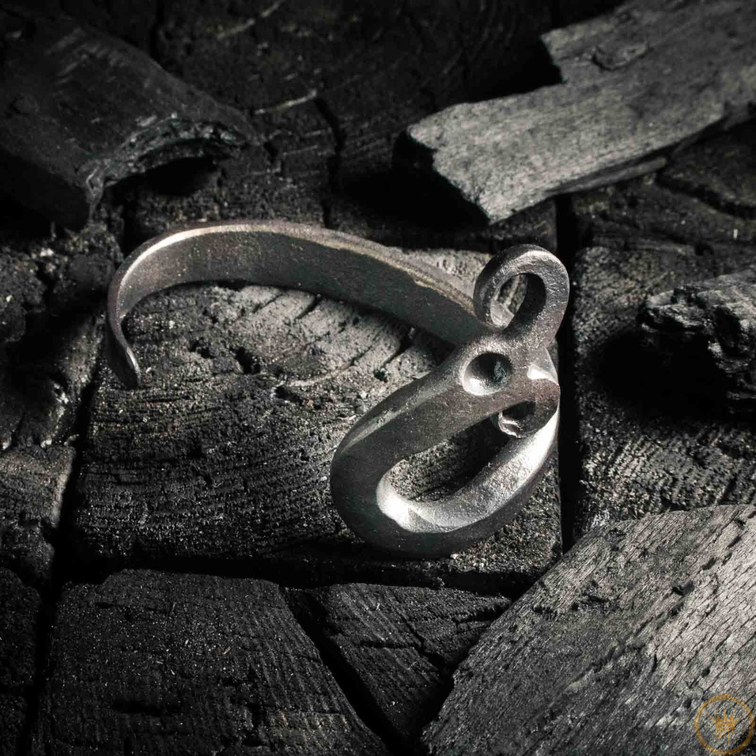 Crafted with Purpose: Each serpent bracelet is hand-forged from solid iron in the heat of the forge. The smith's hammer shapes the metal, bringing the serpent's form to life with flowing curves that wrap around the wrist. The head and tail are carefully rendered, giving each piece its unique character. Choose between the raw, powerful simplicity of the plain iron or the deeply personal touch of engraved runes, adding another layer of ancient meaning to your piece. This is not mass-produced adornment, but authentic, hand-hammered metalwork built to last.