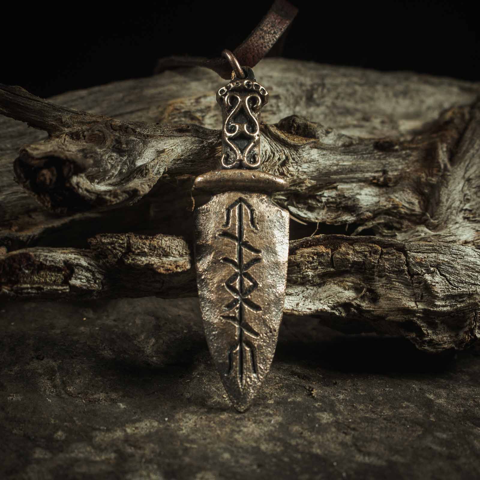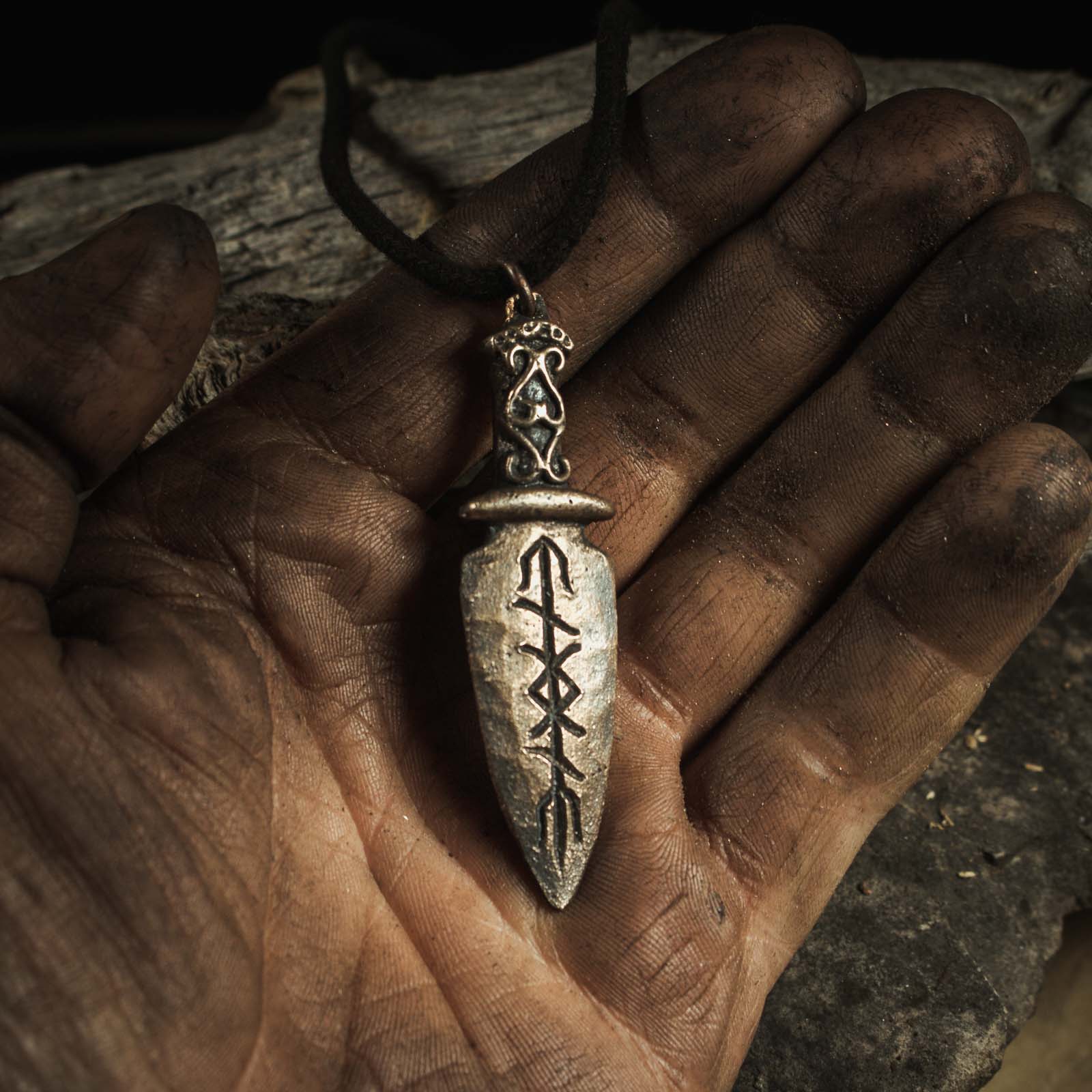 The bindrune represents masculine fertility and sexual power—self-realization, and progression. The spiritual warrior holds courage, devotion, and loyalty. Wisdom is gained through the sacrifice of his lower self to rise to his higher self.