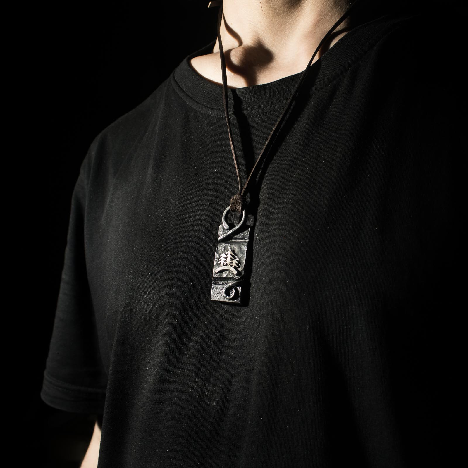 • Materials: Pendant is forged out of iron with the trees in silver. The cord is leather or cotton