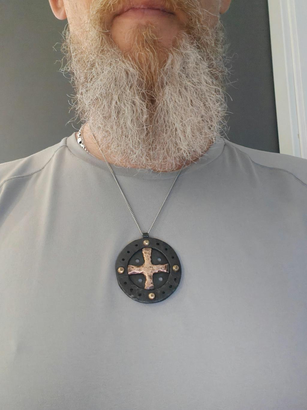 Hand-Forged Sun Cross Pendant In Iron and Bronze