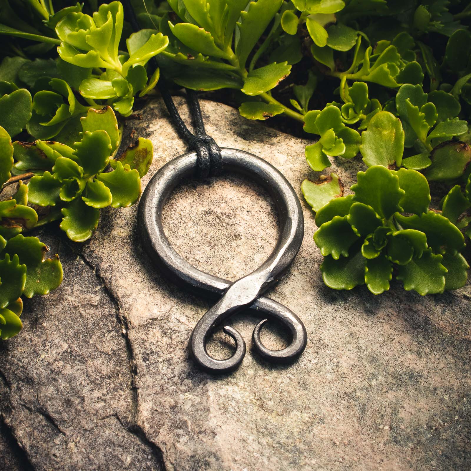 • Materials: Pendant is forged out of iron. The cord is a 2 mm waxed cotton cord.